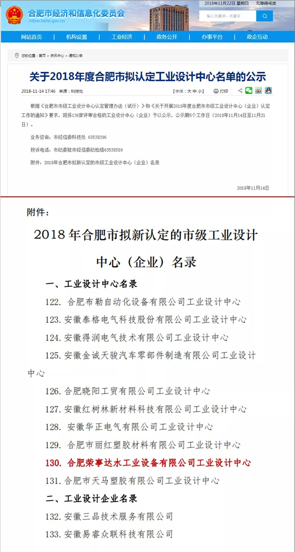 - 喜訊丨榮事達(dá)水工業(yè)公司獲評(píng)“合肥市市級(jí)工業(yè)設(shè)計(jì)中心”