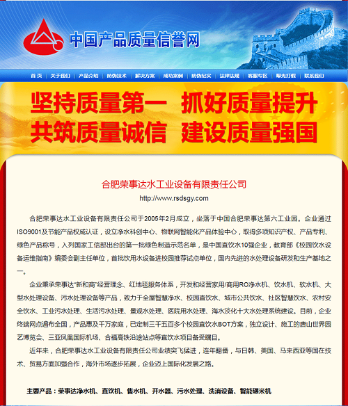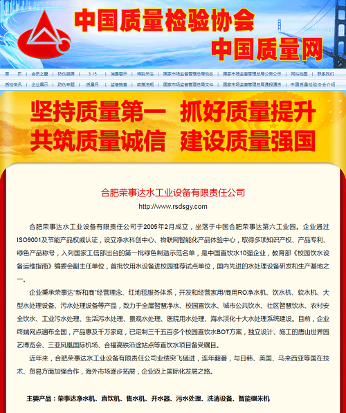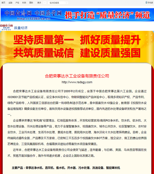 榮事達(dá)水工業(yè)集團(tuán)積極響應(yīng)全國(guó)“質(zhì)量月”活動(dòng),彰顯企業(yè)的社會(huì)責(zé)任和擔(dān)當(dāng),面向全國(guó)用戶做出相關(guān)產(chǎn)品和服務(wù)質(zhì)量誠(chéng)信承諾,一舉拿下五項(xiàng)殊榮,相關(guān)承諾和獲獎(jiǎng)情況已在《中國(guó)質(zhì)量網(wǎng)》《中國(guó)經(jīng)濟(jì)網(wǎng)》《中國(guó)產(chǎn)品質(zhì)量信譽(yù)網(wǎng)》在線發(fā)布。