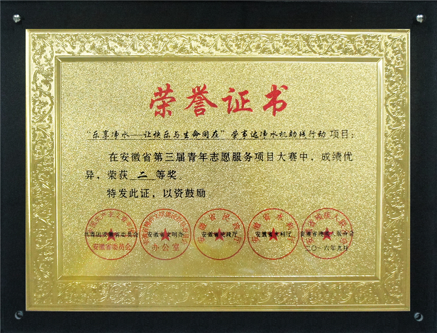 安徽省第三屆青年志愿服務項目大賽二等獎