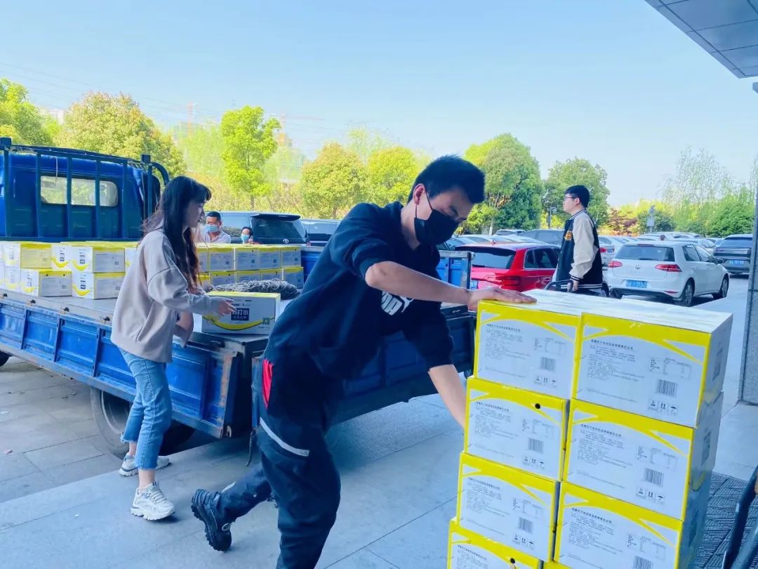 4月8日抗疫物資第一時間送達合肥蜀山區(qū)創(chuàng)新產業(yè)園網易安徽進行統(tǒng)籌安排。