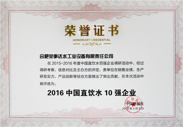 “中國(guó)直飲水百?gòu)?qiáng)企業(yè)”的評(píng)定是對(duì)凈水企業(yè)的銷售業(yè)績(jī)、生產(chǎn)能力、產(chǎn)品創(chuàng)新以及消費(fèi)者品牌認(rèn)知、消費(fèi)者服務(wù)滿意度5方面的高度認(rèn)可,樹(shù)立凈水行業(yè)發(fā)展標(biāo)桿、促進(jìn)行業(yè)健康穩(wěn)步發(fā)展,同時(shí),將對(duì)消費(fèi)者選購(gòu)凈水器產(chǎn)生重大參考意義。