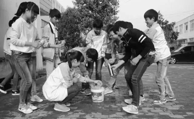 已安裝過凈水加熱設備的學校,孩子們正在排隊打水