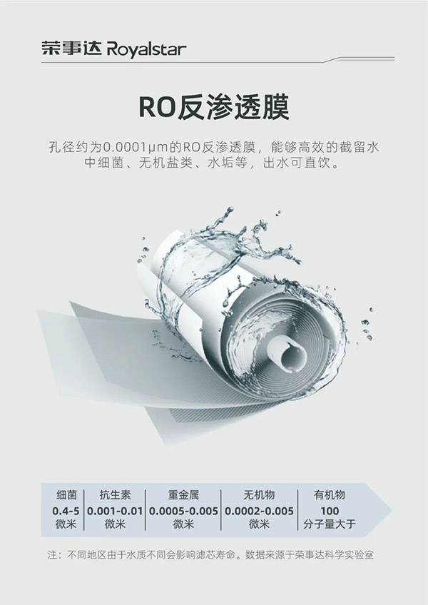產(chǎn)品采用RO反滲透技術(shù)和五級過濾系統(tǒng),PP棉有效濾除原水中的鐵銹、泥沙等顆粒物;壓鑄活性炭濾芯吸附凈化,有效濾除余氯及異色異味;RO反滲透膜有效濾除水堿水垢及重金屬微生物;后置活性炭改善口感、出水甘冽。完美解決學(xué)校飲水各項(xiàng)難題,滿足師生健康飲水需求。
