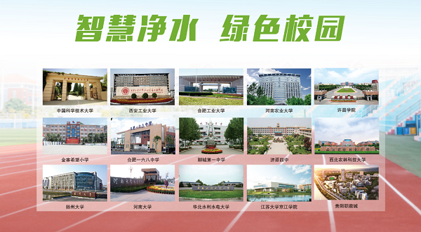 榮事達(dá)水工業(yè)先后承建了中國科學(xué)技術(shù)大學(xué)、河南大學(xué)、西北農(nóng)林科技大學(xué)、江蘇省丹陽市第五中學(xué)等三千五百余所學(xué)校的直飲水工程,‘喝’護(hù)千萬師生飲水健康。