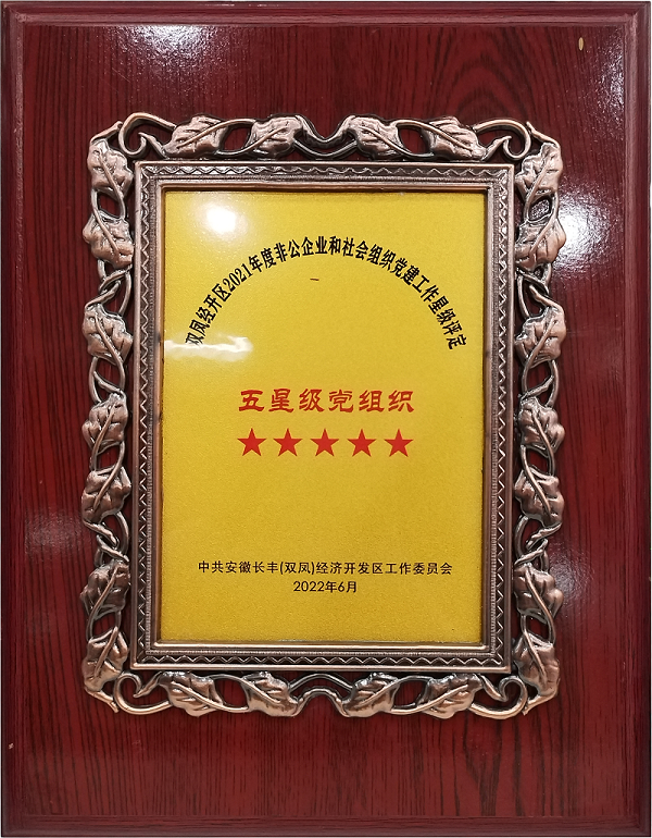會議傳達學習了省委、市委非公工委擴大會精神,為11家省、市、縣級“雙強六好”、“雙比雙爭”及黨建工作示范點獲獎單位授牌。縣委常委、組織部部長張偉親自向合肥榮事達水工業設備有限責任公司黨支部代表頒發了“2022-2024年度全縣非公企業和社會組織黨建工作示范點”獎牌。這次合肥榮事達水工業設備有限責任公司黨支部是繼2016-2022年連續5星黨支部后,再次評定為縣級非公黨建工作示范點。體現了中共長豐縣委組織部對榮事達水工業黨支部工作的充分肯定和高度評價。