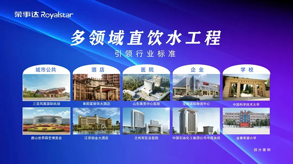 榮事達水工業公司作為凈水領域的佼佼者,已經擁有二十年的行業積累。其產品覆蓋有千萬家庭、2000+企事業單位、3500+校園等場所。此外,榮事達水工業公司還獨立設計施工大型直飲水工程,包括秦始皇兵馬俑博物館、唐山世界園藝博覽會、三亞鳳凰國際機場、合福高鐵沿途站點等知名項目,以及埃塞俄比亞總統府、馬來西亞巴生港、贊比亞恩多拉機場、巴基斯坦默蒂亞里等海外項目,贏得了廣泛的贊譽和信賴。
