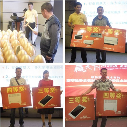 分銷會上,現(xiàn)場訂貨政策解讀贏得廣大客戶一片叫好,訂貨客戶砸金蛋贏燃具套餐、電熱水器、智能手機大獎更是將會議氣氛推向高潮?,F(xiàn)場,新客戶合作意向強烈,洽談區(qū)忙得熱火朝天;老客戶現(xiàn)場訂貨訂單接連不斷,抽得大獎更是喜笑顏開。此次深度分銷會議,榮事達新增30多位凈水機經(jīng)銷商,壯大了終端渠道營銷實力,更是給全國代理商異地溝通、學習提供了有益示范。